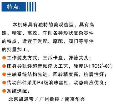 公司生產(chǎn)的CJK系列數(shù)控機(jī)床具有精密高、規(guī)格齊、結(jié)構(gòu)合理、通用性強(qiáng)、造型美觀等優(yōu)點。采用高精度軸承,導(dǎo)軌使用超音頻淬火,經(jīng)久耐用。車床采用彈簧快速夾緊,電機(jī)直接帶動主軸皮帶輪傳動,并配有縱橫定位裝置控制行程,能完成內(nèi)外圓車削、端面車削、切斷、割槽等,是儀表儀器、電器、汽車零配件、軸承及小五金行業(yè)零件加工的理想設(shè)備。